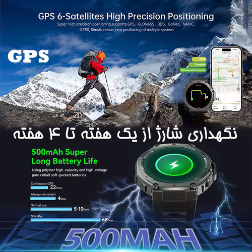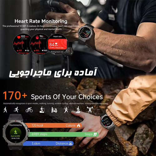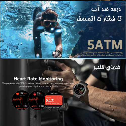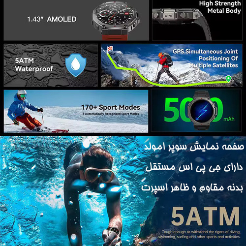 ساعت هوشمند دیبت ویر مدل DM58 با طراحی جسورانه 8 ظلعی با زاویه منعطف در بیرون بدنه و دارای 3 دکمه فعال و در بخش داخلی صفحه نمایش 1.43 اینچی گرد و تمام تاچ بدون حاشیه و با کیفیت امولد و رزولوشن 466×466 پیکسل جهز شده که تجربه دیداری شفاف و رنگی را در هر شرایطی حتی زیر نور مستقیم خورشید با بالاترین کیفیت فراهم میکند. این ساعت از GPS مستقل با پشتیبانی چندین سیستم ماهوارهای برای ردیابی دقیق مسیرها و فعالیتهای خارج از منزل بهره میبرد؛ این دستگاه به سنسور فشار هوا و اندازهگیری ارتفاع، قطبنمای دیجیتال (compass)، سنسور ضربان قلب، اندازهگیری اکسیژن خون (SpO2) و پایش خواب مجهز است تا اطلاعات کامل از سلامت و فعالیت بدنی ارائه دهد ؛ طراحی اسپرت با آلیاژ فلز و پلاستیک ABS محکم به همراه بدنه مقاوم و استاندارد ضد آب 5ATM کاربری در فعالیتهای روزمره و پاشش آب را ممکن میسازد؛ از دیگر قابلیتهای برجسته این ساعت میتوان به بلوتوث نسخه 5.4 با قابلیت تماس بلوتوثی، بیش از 170 حالت ورزشی، اعلانهای هوشمند، کنترل موسیقی، شارژ مغناطیسی و پشتیبانی از اپلیکیشن GloryFitPro برای Android و iOS اشاره کرد، که آن را به یک همراه همهجانبه برای ورزش، سفر و زندگی روزمره تبدیل میکند. یکی از مهمترین و بارز ترین ویژگی این ساعت باتری 500 میلی آمپر ساعت آن است که با یک بار شارژ کامل یک هفته تا 5 هفته بسته به استفاده مداوم از ساعت دوام دارد. این ساعت از زبان فارسی پشتیبانی کامل دارد. اسپیکر این ساعت ضد آب و صدای بلند و بسیار شفاف آن چیزی از خود گوشی کم ندارد.